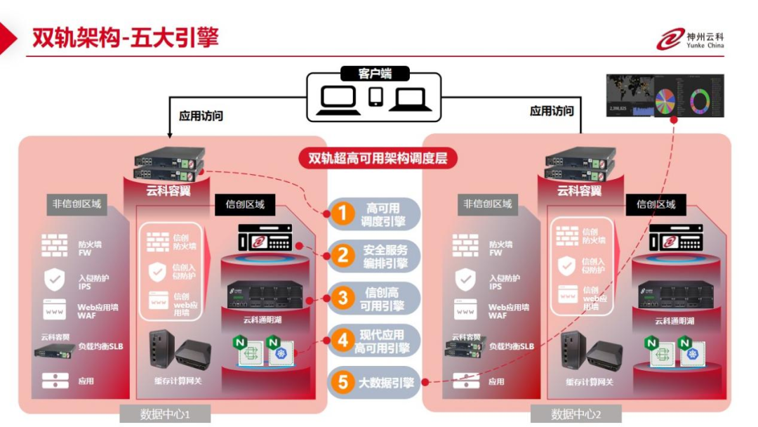 数据中心架构在自主创新的过程中分解为现有架构的非信创区和信创区的两个业务区域,在每个数据中心分为信创区和非信创区后,在两个区域之间的跨区跨域协同方法,WM视讯平台 WM顺利获得5大引擎实现多层次的应用可持续性实践。